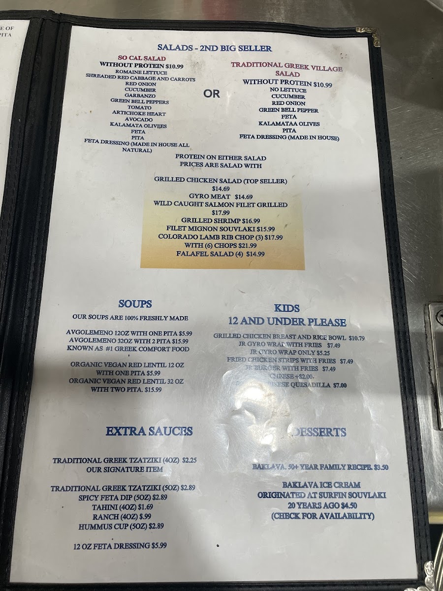 When you step inside Surfin Souvlaki, you're enveloped by a warm, casual atmosphere accented with vibrant decor that pays homage to classic Greek culture. The friendly staff are always welcoming, ready to guide you through a menu bursting with authentic flavors. Whether you’re a fan of Greek cuisine or a newcomer eager to explore, this is a place where you’re bound to feel right at home.
