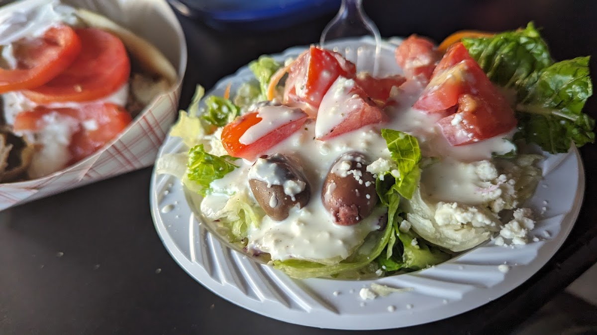 For true meat lovers, the Leg Of Lamb Souvlaki Plate (at $21.99) and the lively Lamb Lollypop Plate (three succulent pieces for $22.99) are guaranteed to satisfy. And for those who prefer a lighter meal, the Traditional Greek Village Salad is a fresh and savory choice, brimming with tomatoes, cucumbers, kalamata olives, and Bulgarian feta, all waiting to be topped with your protein of choice, priced at only $16.99.